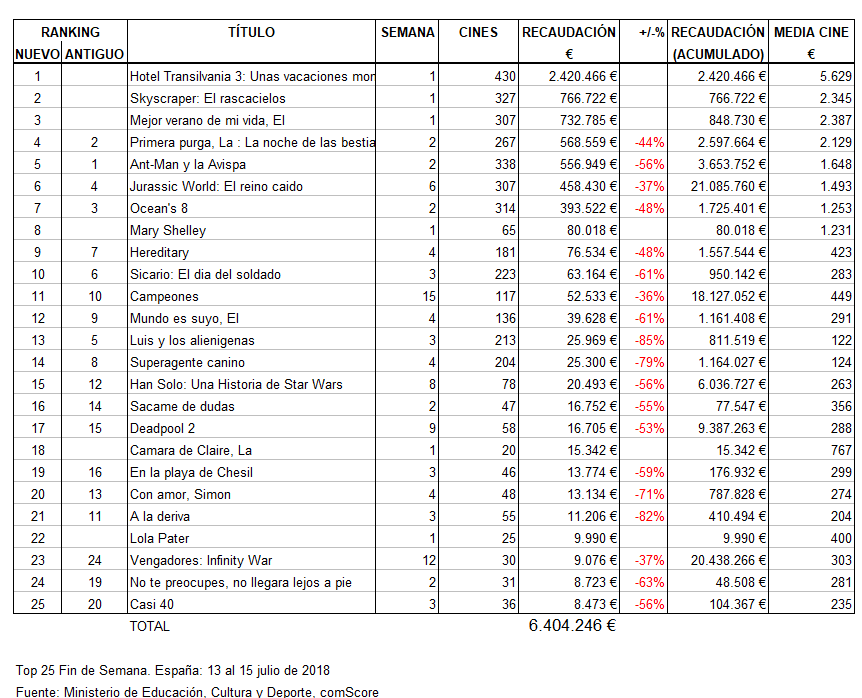 Datos Top 25 OFICIAL fin de semana del 13 al 15 julio 19 julio, 201823 julio, 2018 TaqEsp Aquí os incluimos el top25 semanal correspondiente al fin de semana del 13 al 15 de julio Si quieres leer el análisis de estos datos, pincha aquí Compártenos