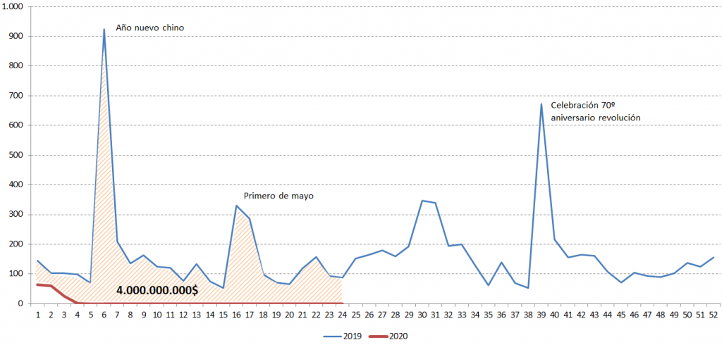 Las pérdidas en la taquilla china están siendo astronómicas y las podemos calcular en el entorno de los 4.000 millones de dólares si las comparamos con las cifras obtenidas el año pasado: