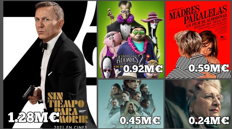 La llegada de Bond no le ha venido muy mal a la cinta de ciencia ficción que se deja un 36% para obtener 450.000€ y acumular 6.52M€. Esto le sirve para ser la tercera película más taquillera del año en España y quinta tras el confinamiento. Su final debería estar en el entorno de los 8M€. Muy bien.