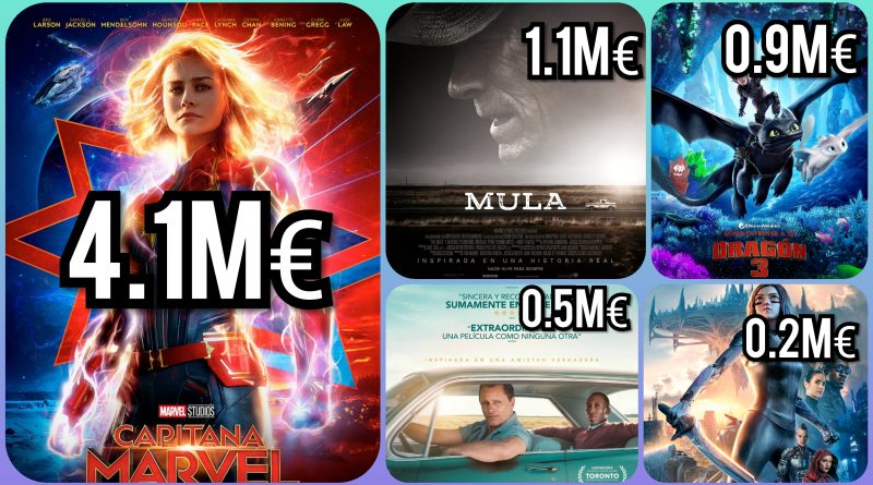 El gran culpable de estos datos es el estreno de Capitana Marvel con más de 4.1M€. Por supuesto es el mejor del año y será uno de los mejores de la temporada. Por ejemplo, solo tres películas el año pasado superaron ese estreno. Además va a ser el mejor estreno de una película del MCU solo por detrás de las películas de Los Vengadores. Todo un éxito.