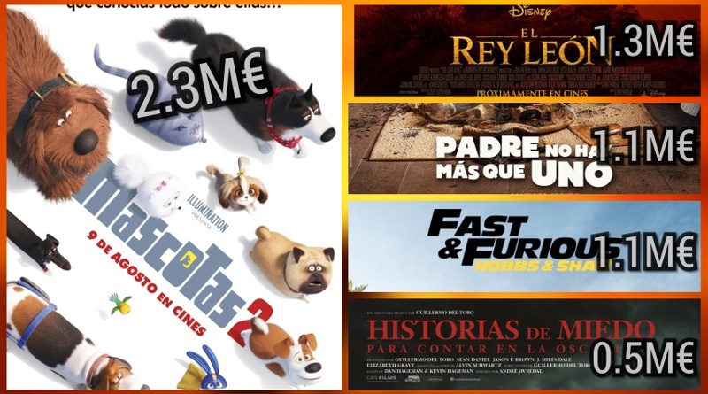 Mascotas 2 se estrena bien con 2.3M€. Esto es entre un 40 y un 45% menos de lo que hiciera la primera parte (4.08M€) Pero no son malos datos ya que tiene todo el mes de agosto por delante para hacer buenas cifras. Además, estrenarse en agosto (y no en junio como casi en el resto del mundo) ha hecho que este descenso sea menor. Por ejemplo en Alemania o Italia recaudó en su estreno hasta un 74% menos. Además, con esos 2.3M€ se colocará como el noveno mejor estreno del año.