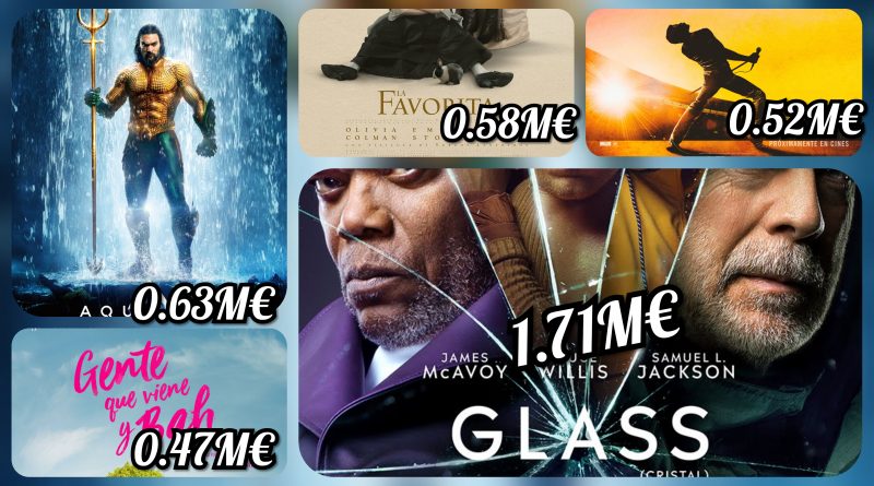 Aquaman pierde su primer puesto de la taquilla en su quinta semana. Datos excepcionales para la cinta que perderá un 37% con respecto a la semana anterior, sin afectarle demasiado el estreno de Glass. Su acumulado asciende a unos 12.4M€ provisionalmente y eso la haría subir hasta el séptimo puesto de la clasificación de películas más taquilleras de 2018.