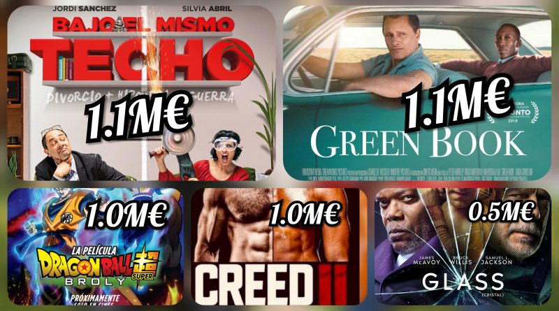 Interesantísimo e igualadísimo fin de semana. Cuatro películas con una recaudación de más de un millón de euros. Cada día un ganador distinto. Dragon Ball ganó el viernes, Bajo el mismo techo el sábado y Green Book el domingo. Más igualado imposible.